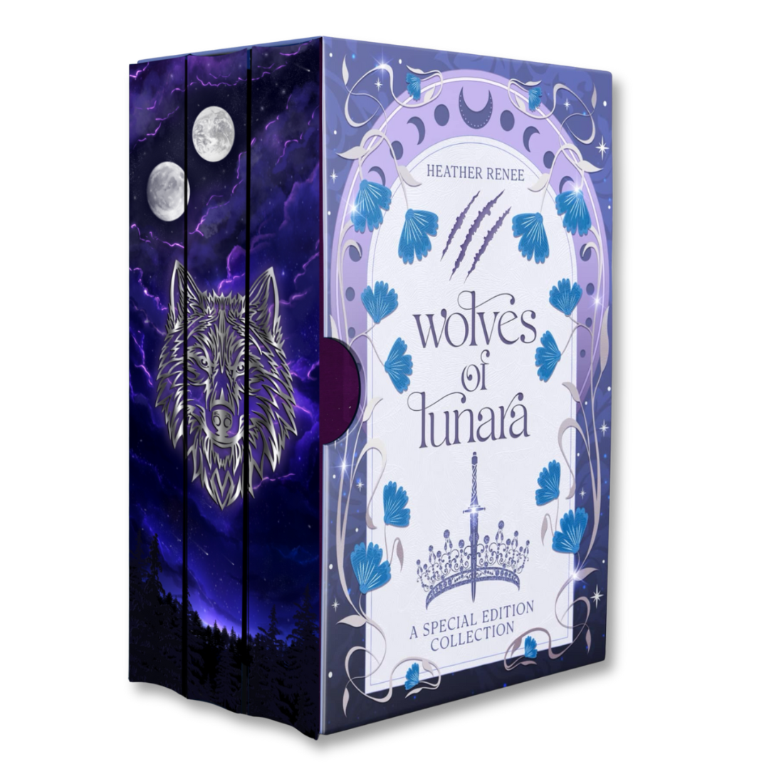 This isn’t just a book set—it’s a once-in-a-lifetime collector’s edition. Featuring foiled dust jackets, custom art hardcovers, sprayed edges that align into one breathtaking image, and every book hand-signed by Heather Renee.